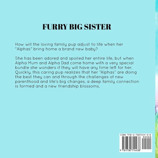 How will the loving family pup adjust to life when her "Alphas" bring home a brand new baby? She has spent her whole life being adored and spoiled but when her "Alphas" come home one day with a very special "bundle" she wonders if they will have any time left for her. Quickly, this caring pup realizes that her "Alphas" are doing the best they can and through the challenges of new parenthood and life's big changes, a deep family connection is formed and a new friendship blossoms. Furry Big Sister is a tender, emotionally rewarding story that countless parents can relate to. This book will make a perfect treasure for those expecting a new baby or who have recently started a family. A beloved baby shower gift, particularly enjoyed by dog owners, but sure to bring happiness to all families who love a heartwarming tale!