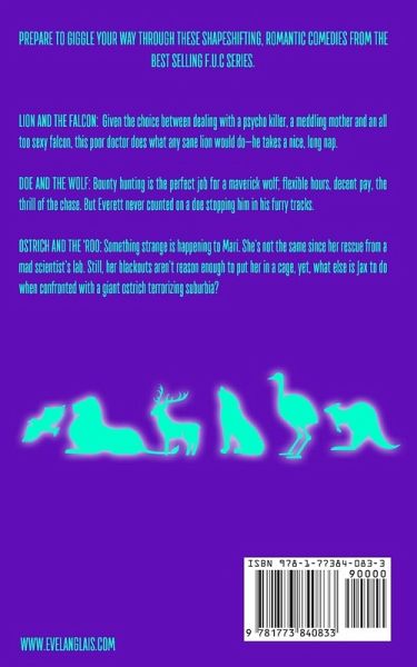 Prepare to giggle your way through these shapeshifting, romantic comedies from the best selling F.U.C series. Lion and the Falcon : Given the choice between dealing with a psycho killer, a meddling mother and an all too sexy falcon, this poor doctor does what any sane lion would do-he takes a nice, long nap. Doe and the Wolf : Bounty hunting is the perfect job for a maverick wolf; flexible hours, decent pay, the thrill of the chase. But Everett never counted on a doe stopping him in his furry tracks. Ostrich and the 'Roo : Something strange is happening to Mari. She's not the same since her rescue from a mad scientist's lab. Still, her blackouts aren't reason enough to put her in a cage, yet, what else is Jax to do when confronted with a giant ostrich terrorizing suburbia? Expect tongue in cheek, romantic comedy featuring a mish mash of shapeshifters and really bad puns.