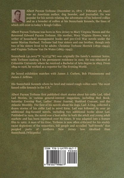 Albert Payson Terhune (December 21, 1872 - February 18, 1942) was an American author, dog breeder, and journalist. He was popular for his novels relating the adventures of his beloved collies and as a breeder of collies at his Sunnybank Kennels, the lines of which still exist in today's Rough Collies. Albert Payson Terhune was born in New Jersey to Mary Virginia Hawes and the Reverend Edward Payson Terhune. His mother, Mary Virginia Hawes, was a writer of household management books and pre-Civil War novels under the name Marion Harland. Terhune had four sisters and one brother, though only two of his sisters lived to be adults: Christine Terhune Herrick (1859-1944); and Virginia Terhune Van De Water (1865-1945). Sunnybank (41.0012°N 74.2755°W) was originally the family's summer home, with Terhune making it his permanent residence in 1912. He was educated at Columbia University where he received a Bachelor of Arts degree in 1893. From 1894 to 1916, he worked as a reporter for The Evening World. He boxed exhibition matches with James J. Corbett, Bob Fitzsimmons and James J. Jeffries. His Sunnybank Kennels where he bred and raised rough collies were "the most famed collie kennels in the U.S." Albert Payson Terhune first published short stories about his collie Lad, titled Lad Stories, in various general-interest magazines, including Red Book, Saturday Evening Post, Ladies' Home Journal, Hartford Courant, and the Atlantic Monthly. The first of his novels about his dogs, Lad: A Dog, collected a dozen stories of his collie Lad in novel form. Lad was followed by over 30 additional dog-focused novels, including two additional books about Lad. Published in 1919, the novel was a best seller in both the adult and young adult markets and has been reprinted over 80 times. It was adapted into a feature film in 1962. A man of his time, Terhune is now often criticized for his starkly racist depictions of the minorities, hill people and so-called "half-breeds" that peopled parts of northern New Jersey less idealized than Sunnybank. (Wikipedia)