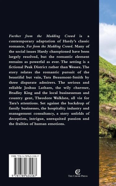 Further from the Madding Crowd is a contemporary re-telling of Hardy's classic romance, 'Far from the Madding Crowd'. Many of the social issues Hardy championed have been largely resolved, but the romantic element remains as powerful as ever. The setting is a fictional Peak District rather than Wessex. The story relates the romantic pursuit of the beautiful but vain, Tara Beaumont-Smith by three disparate admirers. The serious and reliable Joshua Latham, the wily charmer, Bradley King and the local businessman and country gent, Theodore Walklate, all vie for Tara's attention. Set against the backdrop of family businesses, the hospitality industry and management consultancy, a story unfolds of deception, intrigue, unrequited passion and the frailties of human emotions.
