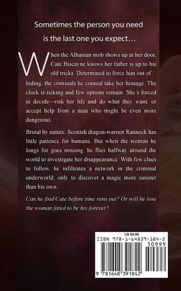 Sometimes the person you need is the last one you expect... When the Albanian mob shows up at her door, Cate Biscayne knows her father is up to his old tricks. Determined to force him out of hiding, the criminals he conned take her hostage. The clock is ticking and few options remain. She's forced to decide-risk her life and do what they want, or accept help from a man who might be even more dangerous. Brutal by nature, Scottish dragon-warrior Rannock has little patience for humans. But when the woman he longs for goes missing, he flies halfway around the world to investigate her disappearance. With few clues to follow, he infiltrates a network in the criminal underworld, only to discover a magic more sinister than his own. Can he find Cate before time runs out? Or will he lose the woman fated to be his forever?