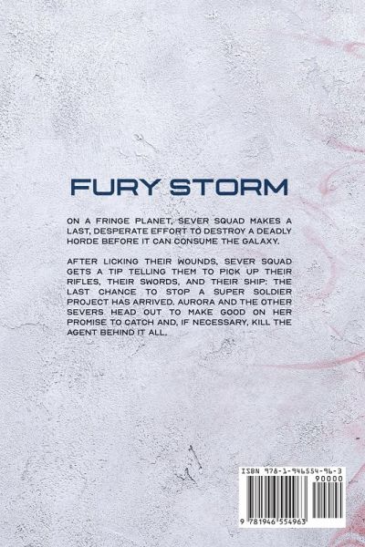 On a fringe planet, Sever Squad makes a last, desperate effort to destroy a deadly horde before it can consume the galaxy. After licking their wounds, Sever Squad gets a tip telling them to pick up their rifles, their swords, and their ship: the last chance to stop a super soldier project has arrived. Aurora and the other Severs head out to make good on her promise to catch and, if necessary, kill the agent behind it all. That agent, though, has friends. Sever's old employers see promise in the super soldiers, a chance to take firm control over the galaxy. To get to the agent, Sever's going to have to get through their former friends. Aurora always believed in fighting for cash, but nobody's paying Sever this time. This last mission? It's personal. Fury Storm is the action-packed finale to the Sever Squad series, calling the battered fighters in for one last chance to stop what began in Drop Zone. A sci-fi story filled with epic battles fought by compelling characters, Fury Storm is a sequel worth taking for a read.