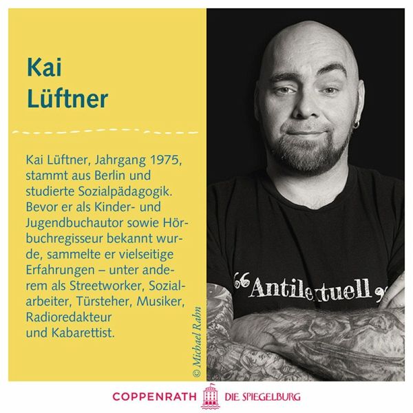 Kai Lüftner, geb. 1975 in Berlin, arbeitete als Streetworker, Kabarettist, Sozialarbeiter, Pizza-Fahrer, Türsteher, Liedtexter, Comedy-Autor, Konzertveranstalter, Radioredakteur sowie in Alten- und Kinderheimen. Heute verdient er sein Geld als Musiker, Hörbuchbearbeiter, Regisseur und Kinderbuchautor. Er ist Vater zweier Söhne und lebt in Berlin-Köpenick. In seiner Freizeit macht er Kampfsport, lässt sich tätowieren, engagiert sich im Tierschutz, liest viel, hört und macht Musik, sammelt Münzen, geht auf Schatzsuche und mit dem Hund Gassi.