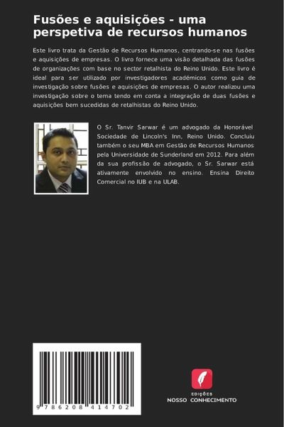 Este livro trata da Gestão de Recursos Humanos, centrando-se nas fusões e aquisições de empresas. O livro fornece uma visão detalhada das fusões de organizações com base no sector retalhista do Reino Unido. Este livro é ideal para ser utilizado por investigadores académicos como guia de investigação sobre fusões e aquisições de empresas. O autor realizou uma investigação sobre o tema tendo em conta a integração de duas fusões e aquisições bem sucedidas de retalhistas do Reino Unido.