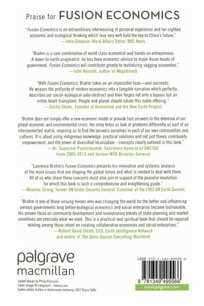 "Laurence Brahm's Fusion Economics presents his innovative and systemic analysis of the main issues that are shaping the global future and what is needed to deal with them. All of us who share these concerns must also join in support of the peaceful revolution for which this book is such a comprehensive and enlightening guide." - Maurice Strong, Canadian UN icon, founder of the 1992 Earth Summit