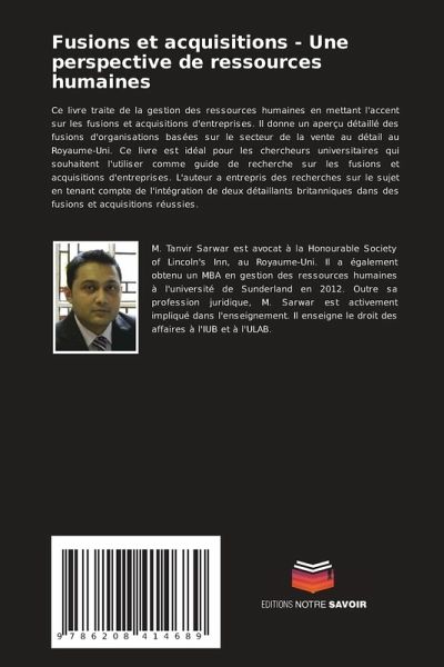 Ce livre traite de la gestion des ressources humaines en mettant l'accent sur les fusions et acquisitions d'entreprises. Il donne un aperçu détaillé des fusions d'organisations basées sur le secteur de la vente au détail au Royaume-Uni. Ce livre est idéal pour les chercheurs universitaires qui souhaitent l'utiliser comme guide de recherche sur les fusions et acquisitions d'entreprises. L'auteur a entrepris des recherches sur le sujet en tenant compte de l'intégration de deux détaillants britanniques dans des fusions et acquisitions réussies.