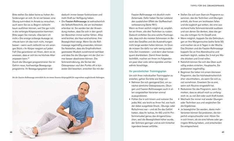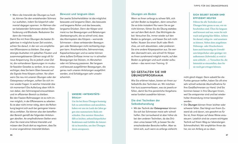 Mit der Erfahrung aus über 30-jähriger Forschung und therapeutischer Praxis erklären die Autoren, warum die Entstehung vieler Schmerzen bisher falsch verstanden wurde. Die wahre Ursache sind meist zu hohe Spannungen der Muskeln und Faszien. Mit einem hoch effizienten, speziell entwickelten Übungsprogramm aus Light-Osteopressur, Dehnungs- und Kräftigungsübungen sowie Faszien-Rollmassage leitet Roland Liebscher-Bracht persönlich die Selbstbehandlung an.
