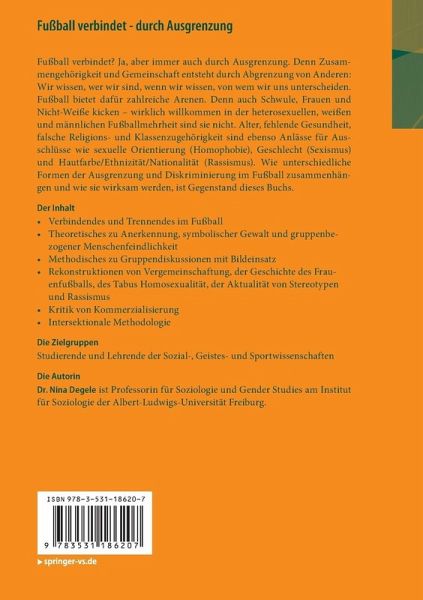 Fußball verbindet? Ja, aber immer auch durch Ausgrenzung. Denn Zusammengehörigkeit und Gemeinschaft entsteht durch Abgrenzung von Anderen: Wir wissen, wer wir sind, wenn wir wissen, von wem wir uns unterscheiden. Fußball bietet dafür zahlreiche Arenen. Denn auch Schwule, Frauen und Nicht-Weiße kicken, wirklich willkommen in der heterosexuellen, weißen und männlichen Fußballmehrheit sind sie nicht. Alter, fehlende Gesundheit, Religionszugehörigkeit und falsche Klassenzugehörigkeit sind ebenso Anlässe für Ausschlüsse wie sexuelle Orientierung (Homophobie), Geschlecht (Sexismus) und Ethnizität/Nationalität/Religion (Rassismus). Wie solch unterschiedliche Formen der Ausgrenzung und Diskriminierung im Fußball zusammenhängen und wie sie wirksam werden, ist Gegenstand dieses Buchs.