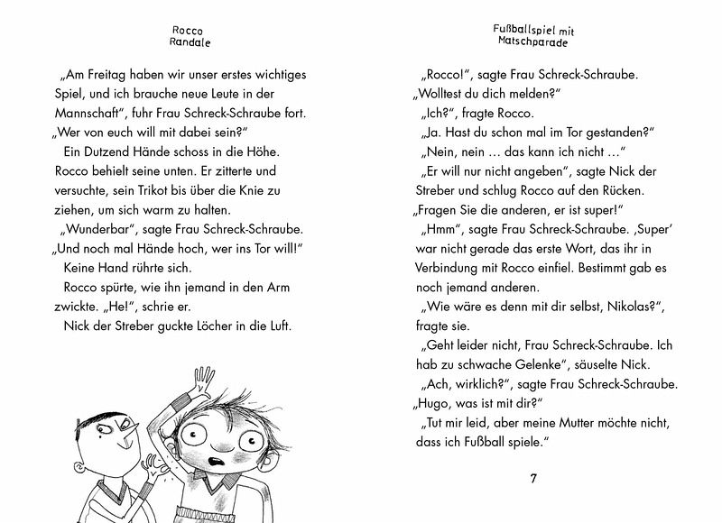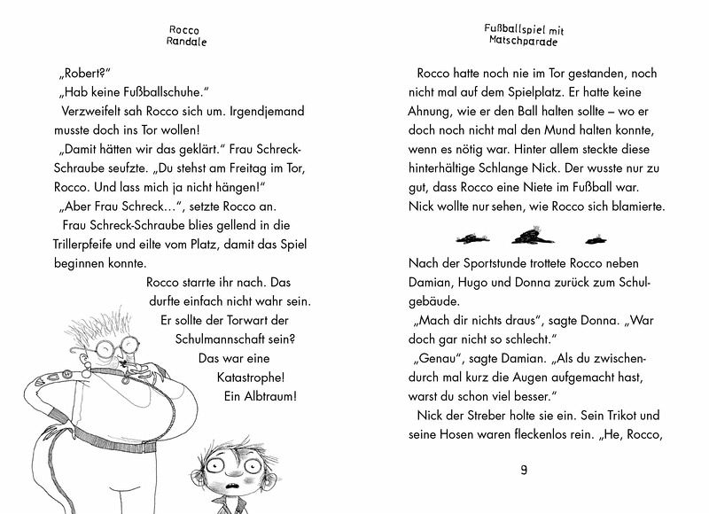 Eine falsche Bewegung zur falschen Zeit und Rocco hat den Schlamassel: Er ist Torwart der neuen Schulfußballmannschaft! Dabei versteht er vom Bällehalten ungefähr so viel wie vom Bravsein - nämlich nichts ...Und auch am Klassenfototag und beim Zelten schießt Rocco so manches Eigentor.