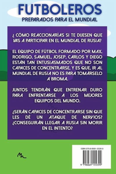 FutbolerosPreparados para el Mundial ¿Cómo reaccionarías si te dijesen que vas a participar en el Mundial de Rusia? El equipo de fútbol formado por Max, Rodrigo, Samuel, Josep, Carlos y Diego están tan entusiasmados que no son capaces de concentrarse, y es que, ir al Mundial de Rusia no es para tomárselo a broma. Juntos tendrán que entrenar duro para enfrentarse a los mejores equipos del mundo. ¿Serán capaces de concentrarse sin que les dé un ataque de nervios? ¿Conseguirán llegar a Rusia sin morir en el intento? A partir de 9 años.
