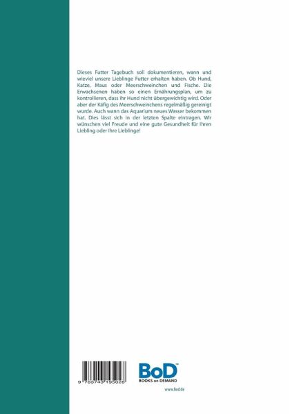 Dieses Futter Tagebuch soll dokumentieren, wann und wieviel unsere Lieblinge Futter erhalten haben. Ob Hund, Katze, Maus oder Meerschweinchen und Fische. Die Erwachsenen haben so einen Ernährungsplan, um zu kontrollieren, dass ihr Hund nicht übergewichtig wird. Oder aber der Käfig des Meerschweinchens regelmäßig gereinigt wurde. Auch wann das Aquarium neues Wasser bekommen hat. Dies lässt sich in der letzten Spalte eintragen. Wir wünschen viel Freude und eine gute Gesundheit für Ihren Liebling oder Ihre Lieblinge!
