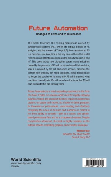 The world overstates the present fear of future risk. Autonomous systems are our future. One day we will wake up to some event that will make it clear that the robots have taken over but just not in the way we always thought. Robots take many forms. A driverless car is a robot. A drone over Afghanistan is a robot. Siri is a robot as are high frequency trading systems. And the autonomous systems that Amazon uses to manage their warehouses and logistics are collections of robots acting in concert. In short, robots, or autonomous systems, are slowly taking over the execution of key processes that run our businesses and our lives. We define an autonomous system to be an integration at the data and process level of three components: sensors or the Internet of Things that collect data; big data that stores and processes data; and artificial intelligence, which takes the information, makes decisions, and acts. On occasions, we add in actuators, which are motors that are responsible for moving or controlling a mechanism or system. Other words for an autonomous system with actuators are "robot," "driverless car," and "unmanned drone." This book describes the coming disruptions caused by autonomous systems (AS), which are unique blends of AI, analytics, and the Internet of Things (IoT). An example of an AS is a driverless car. Analytics is the key element here that is still receiving scant attention as compared to the advances in AI and IoT. This book shows how disruption across many industries caused by the presence of AS will be pervasive and that analytics, which is created by the IoT and other sensors, provides the content from which AI can make decisions. These decisions are no longer the purview of humans only. AS will transcend what machines currently do. We will show how the impact of AS will start to manifest in the coming years.