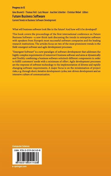 This book covers the proceedings of the first international conference on Future Business Software - a new think tank discussing the trends in enterprise software with speakers from Europe's most successful software companies and the leading research institutions. The articles focus on two of the most prominent trends in the field: emergent software and agile development processes.