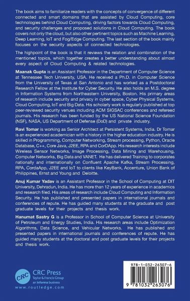 Maanak Gupta is an Assistant Professor in the Department of Computer Science at Tennessee Tech University, USA. He received a Ph.D. in Computer Science from the University of Texas at San Antonio and has worked as a Postdoctoral Research Fellow at the Institute for Cyber Security. He also holds an M.S. degree in Information Systems from Northeastern University, Boston. His primary area of research includes security and privacy in cyber space, Cyber Physical Systems, Cloud Computing, IoT and Big Data. His scholarly work is regularly published at top peer-reviewed security venues including ACM SIGSAC conferences and refereed journals. His research has been funded by the US National Science Foundation (NSF), NASA, US Department of Defense (DoD) and private industry. Ravi Tomar is working as Senior Architect at Persistent Systems, Inida. Dr Tomar is an experienced academician with a history in the higher education industry. He is skilled in Programming, Computer Networking, Stream processing, Python, Oracle Database, C++, Core Java, J2EE, RPA and CorDApp. His research interests include Wireless Sensor Networks, Image Processing, Data Mining and Warehousing, Computer Networks, Big Data and VANET. He has delivered training to corporates nationally and internationally on Confluent Apache Kafka, Stream Processing, RPA, CordaApp, J2EE and IoT to clients like KeyBank, Accenture, Union Bank of Philippines, Ernst and Young and Deloitte. Anuj Kumar Yadav is an Assistant Professor in the School of Computing at DIT University, Dehradun, India. He has more than 12 years of experience in academics and research filed. His areas of research include Cloud Computing and Information Security. He has published and presented papers in International journals and conferences of repute. He has guided many students at the graduate and post graduate levels for their projects and thesis work. Hanumat Sastry G is a Professor in the School of Computer Science at University of Petroleum and Energy Studies, India. His research areas include Optimization Algorithms, Data Science, and Vehicular Networks. He has published and presented papers in international journals and conferences of repute. He has guided many students at the doctoral and post graduate levels for their projects and thesis work.
