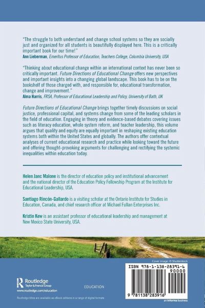 Future Directions of Educational Change brings together timely discussions on social justice, professional capital, and systems change from some of the leading scholars in the field of education. Engaging in theory and evidence-based debates covering issues such as literacy education, whole system reform, and teacher leadership, this volume argues that quality and equity are equally important in reshaping existing education systems both within the United States and globally. The authors offer contextual analyses of current educational research and practice while looking toward the future and offering thought-provoking arguments for challenging and rectifying the systemic inequalities within education today.