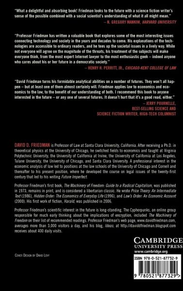 David D. Friedman is Professor of Law at Santa Clara University, California. His ¿rst book, The Machinery of Freedom: Guide to a Radical Capitalism, was published in 1973, remains in print and is considered a libertarian classic. His scientific interest in the future is also long-standing. Professor Friedman's web page, www.davidfriedman.com, averages more than 3,000 visitors a day and his blog, Ideas, at http://daviddfriedman.blogspot.com receives about 400 daily visits.