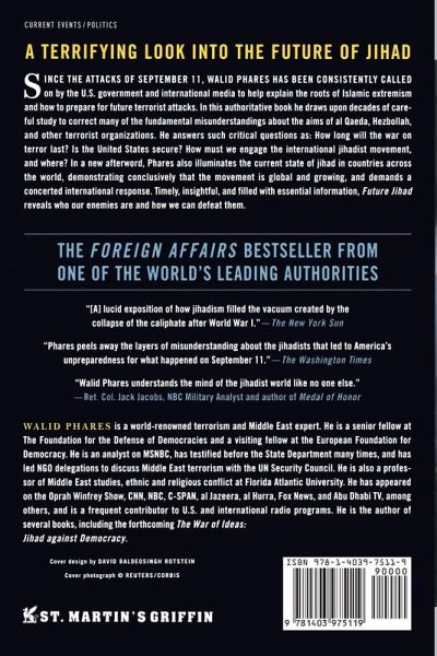 This Foreign Affairs bestseller from MSNBC terrorism expert Walid Phares allows a frightening look into the future of jihad. Phares--who has served as an expert with the Justice Department, briefed the Defense and State Departments, and testified to Congress--shows that ther has been a fundamental misunderstanding about al Qaeda's ultimate goal in the West and what victory means to jihadists. Future Jihad shows how our defenses have been infiltrated; identifies the future generation of home-grown terrorists; and points the way for America to win the ideological war at the heart of jihad.