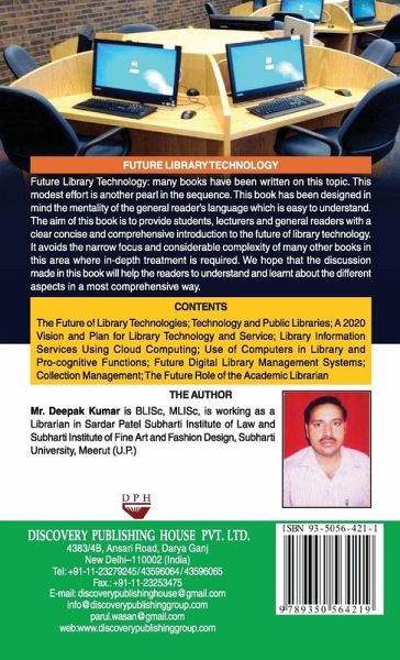 Future Library Technology: many books have been written on this topic. This modest effort is another pearl in the sequence. This book has been designed in mind the mentality of the general reader's language which is easy to understand. The aim of this book is to provide students, lecturers and general readers with a clear concise and comprehensive introduction to the future of library technology.