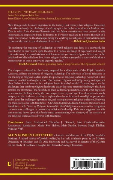 Studying the historical ideals and contemporary challenges of religious leadership, across religious traditions, this volume offers the scholar of religion and the future religious leader a perspective from which to consider the meaning of religious leadership today.