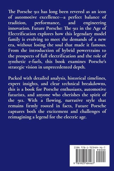 The Porsche 911 has long been revered as an icon of automotive excellence-a perfect balance of tradition, performance, and engineering innovation. Future Porsche: The 911 in the Age of Electrification explores how this legendary model family is evolving to meet the demands of a new era, without losing the soul that made it famous. From the introduction of hybrid powertrains to the prospects of full electrification and the role of synthetic e-fuels, this book examines Porsche's strategic vision in unprecedented depth. Packed with detailed analysis, historical timelines, expert insights, and clear technical breakdowns, this is a book for Porsche enthusiasts, automotive futurists, and anyone who cherishes the spirit of the 911. With a flowing, narrative style that remains firmly rooted in facts, Future Porsche captures both the excitement and challenges of reimagining a legend for the electric age.