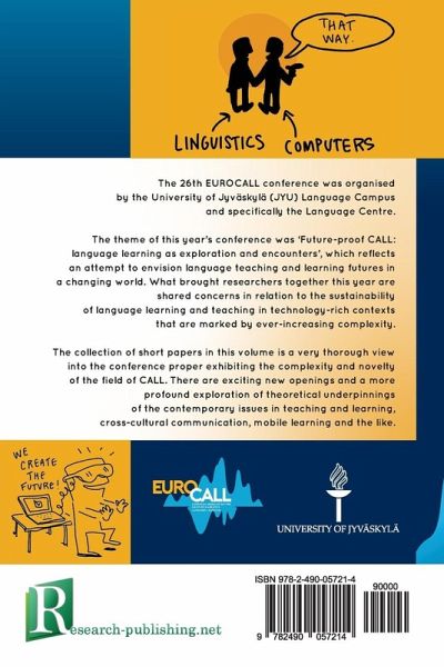 The 26th EUROCALL conference was organised by the University of Jyväskylä (JYU) Language Campus and specifically the Language Centre. The theme of this year's conference was 'Future-proof CALL: language learning as exploration and encounters', which reflects an attempt to envision language teaching and learning futures in a changing world. What brought researchers together this year are shared concerns in relation to the sustainability of language learning and teaching in technology-rich contexts that are marked by ever-increasing complexity. The collection of short papers in this volume is a very thorough view into the conference proper exhibiting the complexity and novelty of the field of CALL. There are exciting new openings and a more profound exploration of theoretical underpinnings of the contemporary issues in teaching and learning, cross-cultural communication, mobile learning and the like.