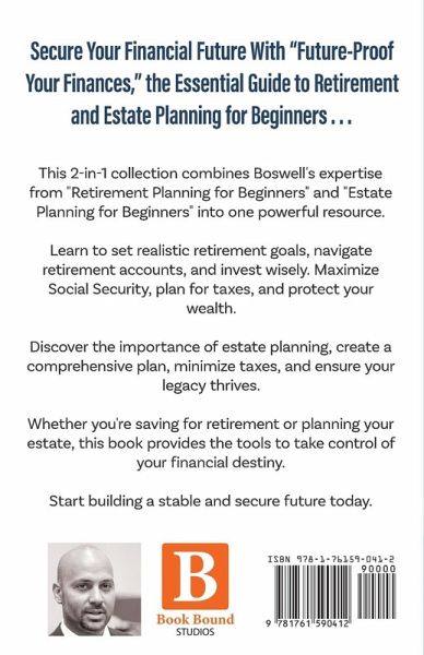 "Future-Proof Your Finances" is the definitive collection for anyone looking to secure their financial future through meticulous retirement and estate planning. This comprehensive guide is a 2-in-1 collection of Boswell's "Retirement Planning for Beginners" and "Estate Planning for Beginners." Whether you're just starting to save for retirement or are already considering how to pass on your legacy best, this book offers clear, actionable advice tailored to beginners. Focusing on simplifying complex financial and legal concepts, "Future-Proof Your Finances" empowers you to take control of your financial destiny. From "Retirement Planning for Beginners":Set realistic retirement goals and create a timeline that works for you. Navigate the world of retirement accounts, from IRAs to employer-sponsored plans. Invest wisely with an eye on risk, diversification, and long-term growth. Maximize your Social Security benefits and integrate them with other income sources. Plan for taxes, healthcare, and estate considerations to protect your wealth. From "Estate Planning for Beginners," you'll discover:A clear explanation of estate planning and why it's crucial for everyone. Step-by-step guidance through the estate planning process, from identifying your assets to selecting executors and trustees. Strategies to protect your estate and minimize taxes, ensuring your beneficiaries receive the maximum benefits. Insightful discussions on managing digital assets, healthcare decisions, and planning for incapacity. Special considerations for business owners, including succession planning and asset valuation. With "Future-Proof Your Finances," you'll gain the knowledge and confidence to make informed decisions that pave the way for a stable, secure, and enjoyable future. Don't leave your financial well-being to chance-embrace the guidance offered in this essential collection and start building a robust financial foundation today.
