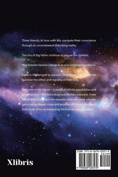 Three friends, in love with life, navigate their conscience through an uncertain and disturbing reality. The sins of the father continue to plague the children. New frontiers beckon change in an ever-progressing universe. Earth is challenged to survive. Only those with character question the ethics and morality of their lives. Welcome to the future-a world of infinite possibilities and advancements. New technology anesthetizes everyone. Times are hard for many, but the rewards draw everyone into the game being played. Hope and promise still live in the hearts and minds of those expanding the human race into space.