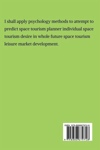 What are the difference traveller psychology between space and earth tourism? In this book, I shall follow travel psychologists and space tourism entertainment businessmen support view points to give my opinions to attempt to answer above questions. My readers will learn how to apply new space travel strategic knowledge to solve and predict future space tourism leisure consumer behavior more accurately.Therefore, it brings these questions: How any why traveller individual travelling choice won't be influenced by travelling entertainment service price only? Does it mean the travelling entertainment service providers will not reduce their traveller number when they can respect or consider above factors to avoid to bring negative influence to traveller consumers, but they still change higher travelling entertainment arrangement service fee to them? In my this part, I shall explain above factors how to influence traveller individual behavior to let readers can predict traveller individual behavior more accurately.