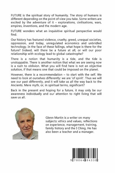FUTURE is the spiritual story of humanity. There are many books which are histories of humanity; they are different depending on the point of view of the author. Many are excited about the human adventure, and are enthused by exploration, empires and progress. Others anticipate catastrophe because of population, capitalism and technology, and their effect on the Earth's ecology. This book approaches the question from a spiritual perspective, looking at human behaviour and what we can learn from past civilisations and from religions. It explores the question of ancient knowledge, and looks at contemporary humanity with more than the empty lens of materialism. It suggests a way to live that offers peace and bliss, without imposing a solution on the world.