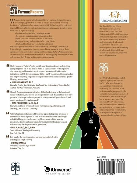 Welcome to the next level in financial literacy training, designed to reach the emerging generation of youth in today's media-driven economy. The FutureProfits curriculum blends essential life skills along with traditional financial literacy subjects, such as budgeting and banking, and also gives an in-depth look at topics including: ¿ Understanding predatory lending schemes ¿ How money circulates in urban communities ¿ Race, class, and power structures in our society ¿ How goal setting and decisions affect your future ¿ The benefits of delayed vs. instant gratification This curriculum makes the shift from standard financial literacy training into insightful and inspiring lessons that relate to urban youth. It was derived from the observations of the effects of poverty in under-resourced communities nationwide. This whole person approach, called "Life Economics", is built to give students the tools to succeed in an economic system that a significant portion of youth is unprepared to navigate. FutureProfits empowers students with the tools to break the chains of poverty, giving them the resources to determine their destiny and impact their community.