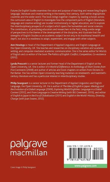Ann Hewings is Director of the Centre for Language and Communication, The Open University, UK. She is editor of the 'Worlds of English' series (2012, Routledge), and The Politics of English: Conflict, Competition, Co-existence (with Caroline Tagg, 2012, Routledge), and author of Grammar and Context (with Martin Hewings, 2005, Routledge). Lynda Prescott is Head of the Department of English, The Open University, UK. She is editor of A World of Difference - an anthology of short stories from five continents (2008, Palgrave Macmillan) and author of Open University teaching materials on nineteenth- and twentieth-century literature. Philip Seargeant is Senior Lecturer in Applied Linguistics in the Centre for Language and Communication, The Open University, UK. He is author of The Idea of English in Japan: Ideology and the Evolution of a Global Language (2009, Multilingual Matters), Exploring World Englishes: Language in a Global Context (2012, Routledge), and From Language to Creative Writing (with Bill Greenwell, 2013, Bloomsbury), and editor of English in Japan in the Era of Globalization (2011, Palgrave Macmillan) and English in the World: History, Diversity, Change (with Joan Swann, 2012, Routledge).