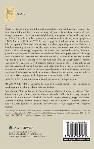 Essays on aspects of medieval French literature, celebrating the scholarship of Sarah Kay and her influence on the field. Sarah Kay is one of the most influential medievalists of the past fifty years, making vital, theoretically informed interventions on material from early medieval chansons de geste, through troubadour lyric, to late medieval philosophy and poetry, in French, Occitan, Latin, and Italian. This volume in her honour is organised around her six major monographs, published between 1990 and 2017. Its essays engage in critical, constructive dialogue with different aspects of Kay's work, and envisage how these might shape medieval French as a discipline in coming years or decades. The subject matters demonstrate the richness of the discipline: animal studies, musicology, temporality, the material turn, medieval textuality, feminism, queer theory, voice, medieval and modern intellectual formations, psychoanalysis, philology, visual arts, transversal criticism, the literary object, affect, rhetoric, body, the past, modern responses to medieval forms and tropes, non-Christian texts and thought-patterns, politics. Reiterating Kay's engagement with medieval literature's complex philosophical debates and analytical scrutiny of human knowledge and affect, they follow her in emphasising how the pleasure of reading medieval literature depends crucially on that literature's intellectual robustness. These essays shed new light on a range of canonical and less well-known medieval texts and artefacts, to present a fresh perspective on the field of medieval studies.