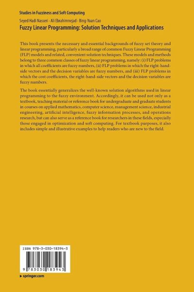 This book presents the necessary and essential backgrounds of fuzzy set theory and linear programming, particularly a broad range of common Fuzzy Linear Programming (FLP) models and related, convenient solution techniques. These models and methods belong to three common classes of fuzzy linear programming, namely: (i) FLP problems in which all coefficients are fuzzy numbers, (ii) FLP problems in which the right-hand-side vectors and the decision variables are fuzzy numbers, and (iii) FLP problems in which the cost coefficients, the right-hand-side vectors and the decision variables are fuzzy numbers.
