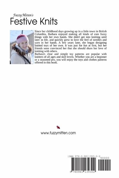 Fuzzy Mitten's Fuzzy Knits is a collection of 12 quick and simple toy knitting patterns, guaranteed to delight knitters of any skill level -- from a beginner to a seasoned pro. This book includes 12 cute patterns to keep you busy throughout the seasons of the year: a Big Polar Teddy, a Reindeer, a Baby Penguin, a Mama Bunny, a Baby Bunny, a Squirrel, a Koala, a Fuzzy Farm, a Hippo, a Bat, an Owl, and a Cat -- clothes patterns included, too!