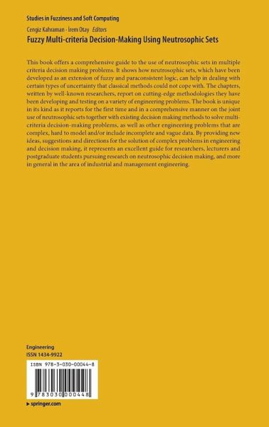 This book offers a comprehensive guide to the use of neutrosophic sets in multiple criteria decision making problems. It shows how neutrosophic sets, which have been developed as an extension of fuzzy and paraconsistent logic, can help in dealing with certain types of uncertainty that classical methods could not cope with. The chapters, written by well-known researchers, report on cutting-edge methodologies they have been developing and testing on a variety of engineering problems. The book is unique in its kind as it reports for the first time and in a comprehensive manner on the joint use of neutrosophic sets together with existing decision making methods to solve multi-criteria decision-making problems, as well as other engineering problems that are complex, hard to model and/or include incomplete and vague data. By providing new ideas, suggestions and directions for the solution of complex problems in engineering and decision making, it represents an excellent guide for researchers, lecturers and postgraduate students pursuing research on neutrosophic decision making, and more in general in the area of industrial and management engineering.