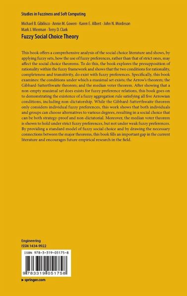 This book offers a comprehensive analysis of the social choice literature and shows, by applying fuzzy sets, how the use of fuzzy preferences, rather than that of strict ones, may affect the social choice theorems. To do this, the book explores the presupposition of rationality within the fuzzy framework and shows that the two conditions for rationality, completeness and transitivity, do exist with fuzzy preferences. Specifically, this book examines: the conditions under which a maximal set exists; the Arrow's theorem; the Gibbard-Satterthwaite theorem and the median voter theorem. After showing that a non-empty maximal set does exists for fuzzy preference relations, this book goes on to demonstrating the existence of a fuzzy aggregation rule satisfying all five Arrowian conditions, including non-dictatorship. While the Gibbard-Satterthwaite theorem only considers individual fuzzy preferences, this work shows that both individuals and groups can choose alternatives to various degrees, resulting in a social choice that can be both strategy-proof and non-dictatorial. Moreover, the median voter theorem is shown to hold under strict fuzzy preferences but not under weak fuzzy preferences. By providing a standard model of fuzzy social choice and by drawing the necessary connections between the major theorems, this book fills an important gap in the current literature and encourages future empirical research in the field.