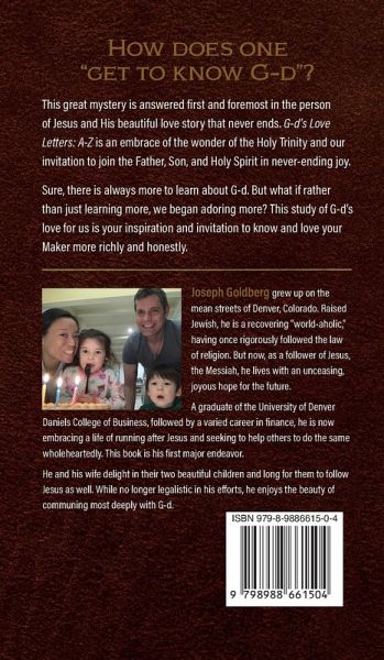 This book's impetus was to get to know G-d better. In many ways, it is a research paper on the Holy Trinity. The beautiful realization is that this is a love story which never ends. There is always more to learn and adore. My deepest yearning is that you, fellow creation, are inspired to know your Makers better and better.