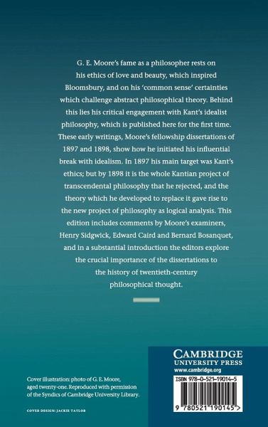 Presents Moore's fellowship dissertations of 1897 and 1898, showing his influential break with idealism and the development of logical analysis.