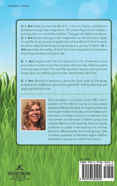 G. I. Ant takes you into the life of G. I. Ant, Izri, Fezzic, and Monica Butterfly through the imagination. Of course they are not children, but they live in a world like children. Through the lifelike situations, G. I. Ant leaves nothing to the imagination as the situations relate to real life. A very practical application of the Word of God for each situation helps those living and growing as a young Christian. G. I. Ant separates the reality of truth from the imaginational characters that bring the Word of God to life. G. I. Ant begins with the foundational truth of salvation and proceeds to truths to live the Christian life that help fulfill the plans and purposes of God. This real-life approach leaves nothing to the imagination as children grow in their relationship with God. G. I. Ant desires to become a giant for God, and his life gives examples for children to grow to be giants for God by learning and applying biblical truths.
