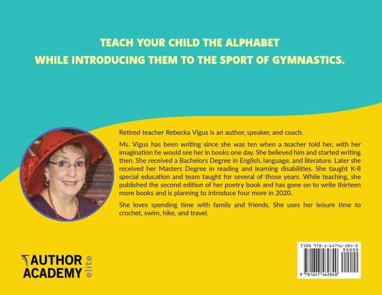 The book is an alphabet book. While teaching the alphabet it also teaches some of the skills needed to be a gymnast. Pictures show girls working in a gym, doing the different tumbling and balancing skills.