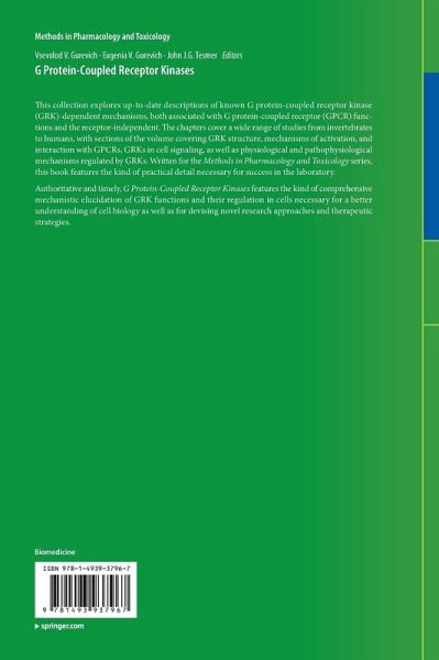 This collection explores up-to-date descriptions of known G protein-coupled receptor kinase (GRK)-dependent mechanisms, both associated with G protein-coupled receptor (GPCR) functions and the receptor-independent. The chapters cover a wide range of studies from invertebrates to humans, with sections of the volume covering GRK structure, mechanisms of activation, and interaction with GPCRs, GRKs in cell signaling, as well as physiological and pathophysiological mechanisms regulated by GRKs. Written for the Methods in Pharmacology and Toxicology series, this book features the kind of practical detail necessary for success in the laboratory. Authoritative and timely, G Protein-Coupled Receptor Kinases features the kind of comprehensive mechanistic elucidation of GRK functions and their regulation in cells necessary for a better understanding of cell biology as well as for devising novel research approaches and therapeutic strategies.