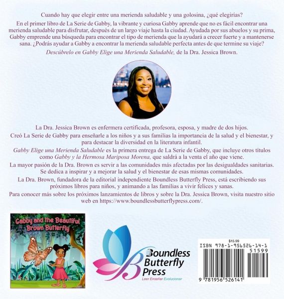 Cuando hay que elegir entre una merienda saludable y una golosina, ¿qué elegirías? En el primer libro de La Serie de Gabby, la vibrante y curiosa Gabby aprende que no es fácil encontrar una merienda saludable para disfrutar, después de un largo viaje hasta la ciudad. Ayudada por sus abuelos y su prima, Gabby emprende una búsqueda para encontrar el tipo de merienda que la ayudará a crecer fuerte y a mantenerse sana. ¿Podrás ayudar a Gabby a encontrar la merienda saludable perfecta antes de que termine su viaje? Descúbrelo en Gabby Elige una Merienda Saludable, de la Dra. Jessica Brown.