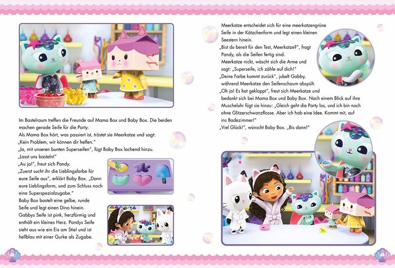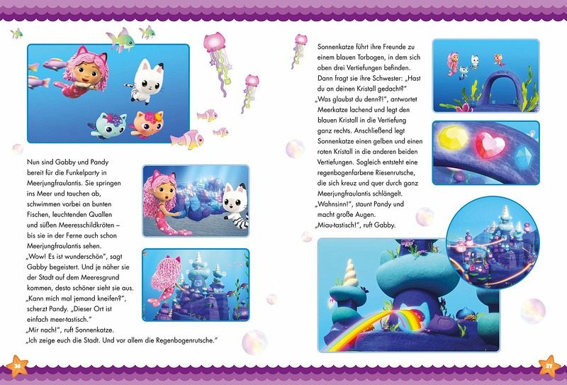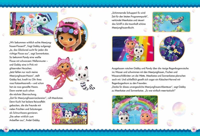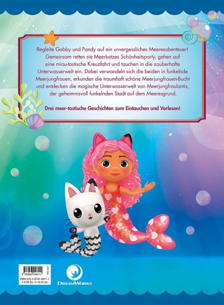 Begleite Gabby und Pandy auf ein unvergessliches Meeresabenteuer! Gemeinsam retten sie Meerkatzes Schönheitsparty, gehen auf eine miau-tastische Kreuzfahrt und tauchen in die zauberhafte Unterwasserwelt ein. Dabei verwandeln sich die beiden in funkelnde Meerjungfrauen, erkunden die traumhaft schöne Meerjungfrauen-Bucht und entdecken die magische Unterwasserwelt von Meerjungfraulantis, der geheimnisvoll funkelnden Stadt auf dem Meeresgrund.Drei meer-tastische Geschichten zum Eintauchen und Vorlesen!