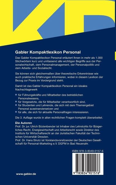 "Schlägt der Leser ein Kompakt-Lexikon von Gabler auf, erwartet er fundiert und prägnant geschrieben Texte mit logischen Querverweisen zum Thema - in diesem Fall zu allen wichtigen Begriffen rund um Personalmanagement und -politik sowie Arbeits- und Sozialrecht. Auch das Kompakt-Lexikon Personal präsentiert sich in dieser Tradition als solides Nachschlagewerk." -- Börsen-Zeitung, 13.02.2007