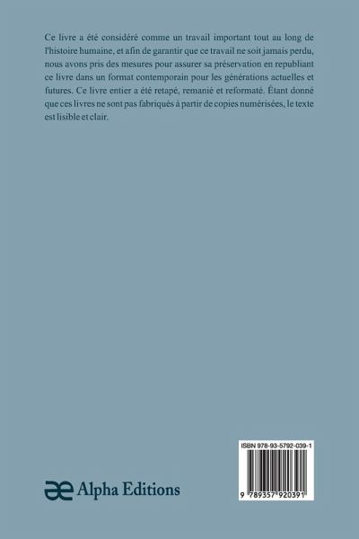 Gabriel Lambert, un livre classique et rare qui a été considéré comme essentiel tout au long de l'histoire de l'humanité, pour que cet ouvrage ne soit jamais oublié, nous chez Alpha Editions avons fait des efforts pour sa préservation en rééditant ce livre dans un format moderne pour les générations présentes et futures. Tout ce livre a été reformaté, retapé et conçu. Ces livres ne sont pas constitués de copies numérisées de leur ¿uvre originale et le texte est donc clair et lisible.
