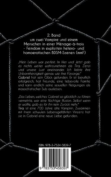 Gabriel lässt sich immer weiter auf die Vampire Tira und Zensi ein. Ihre erotische SM Beziehung ist für ihn pure Erfüllung und ihre Liebe zueinander wächst. Alles könnte perfekt sein, wenn nicht die Jäger ihnen im Nacken sitzen würden und Gabriel immer noch nichts davon weiß, das seine Geliebten