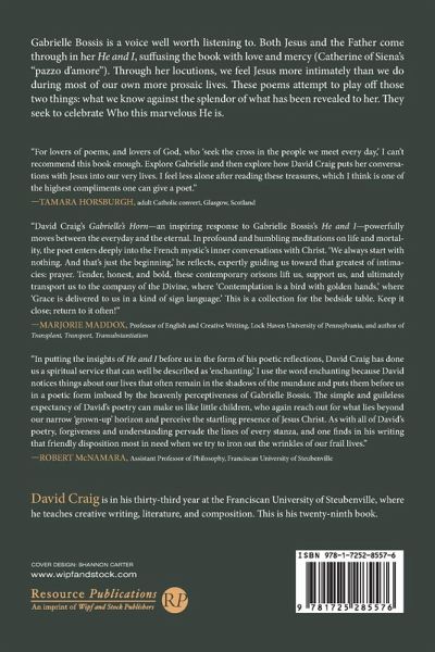 Gabrielle Bossis is a voice well worth listening to. Both Jesus and the Father come through in her He and I, suffusing the book with love and mercy (Catherine of Siena's ""pazzo d'amore""). Through her locutions, we feel Jesus more intimately than we do during most of our own more prosaic lives. These poems attempt to play off those two things: what we know against the splendor of what has been revealed to her. They seek to celebrate Who this marvelous He is.