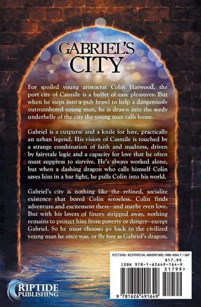 For spoiled young aristocrat Colin Harwood, the port city of Casmile is a buffet of easy pleasures. But when he steps into a pub brawl to help a dangerously outnumbered young man, he is drawn into the seedy underbelly of the city the young man calls home. Gabriel is a cutpurse and a knife for hire, practically an urban legend. His vision of Casmile is touched by a strange combination of faith and madness, driven by fairytale logic and a capacity for love that he often must suppress to survive. He's always worked alone, but when a dashing dragon who calls himself Colin saves him in a bar fight, he pulls Colin into his world. Gabriel's city is nothing like the refined, socialite existence that bored Colin senseless. Colin finds adventure and excitement there-and maybe even love. But with his layers of finery stripped away, nothing remains to protect him from poverty or danger-except Gabriel. So he must choose: go back to the civilized young man he once was, or fly free as Gabriel's dragon.