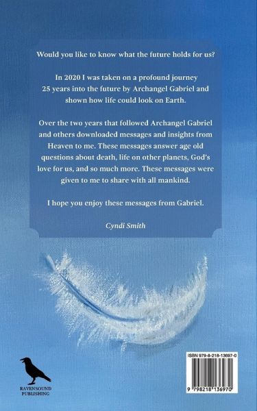 Would you like to know what the future holds for us? In 2020 I was taken on a profound journey 25 years into the future by Archangel Gabriel and shown how life could look on Earth. Over the two years that followed Archangel Gabriel and others downloaded messages and insights from Heaven to me. These messages answer age old questions about death, life on other planets, God's love for us, and so much more. These messages were given to me to share with all mankind. I hope you enjoy these messages from Gabriel. Cyndi Smith