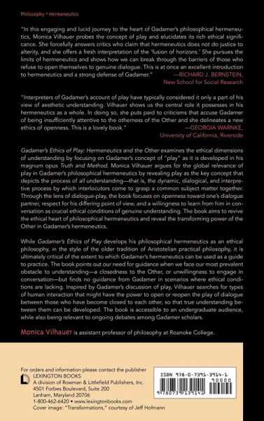 Gadamer's Ethics of Play examines the ethical dimensions of understanding by focusing on the concept of dialogical "play" in Hans-Georg Gadamer's Truth and Method. The book is accessible to an undergraduate audience, while also being relevant to ongoing debates among Gadamer scholars.